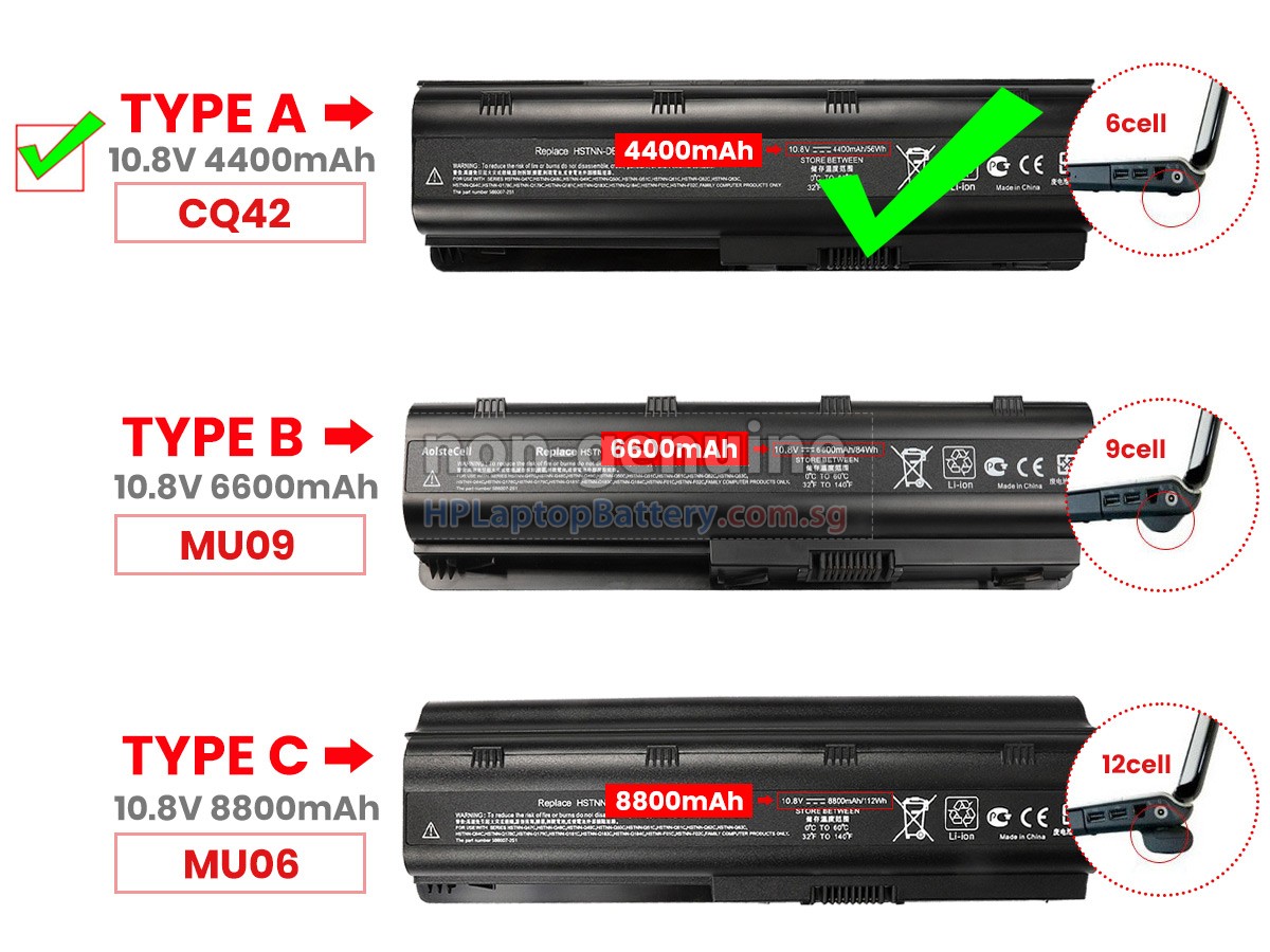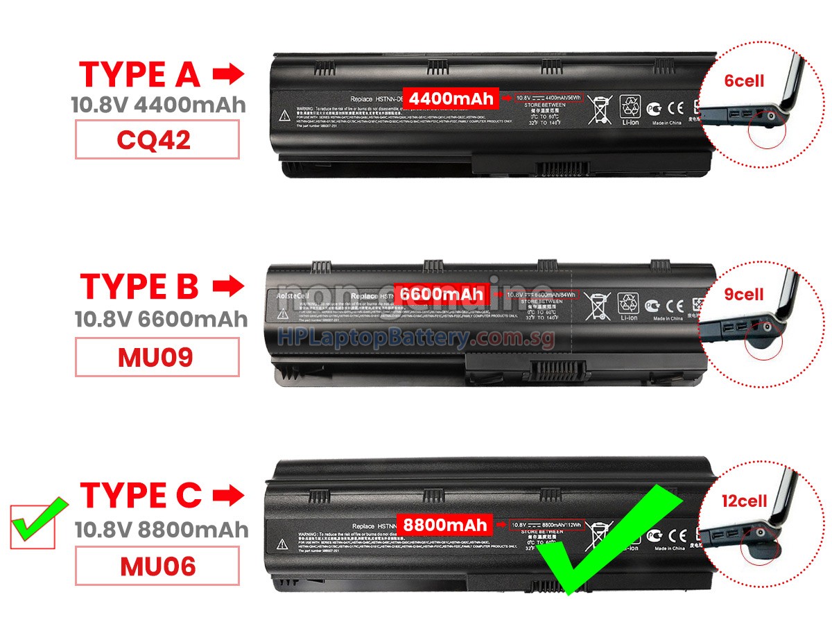 2. These replacement Pavilion G4-1309TU batteries are not compatible with HP Pavilion DV3-1000, DV3-2000 series and HP Pavilion DV6-1000, DV6-2000, DV6-7000, DV7-7000 Series laptops. 3. The 6600mAh(9 Cells) and 8800mAh(12 Cells) batteries will extend out about 1 inch from the bottom of the laptop, bigger size but help cooling and lasting longer.
